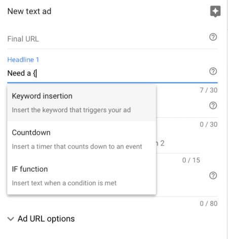 You have the option to add up to 15 headlines and 4 descriptions. And if you want to optimise your RSA campaigns, you should be creating as many unique headlines as possible.