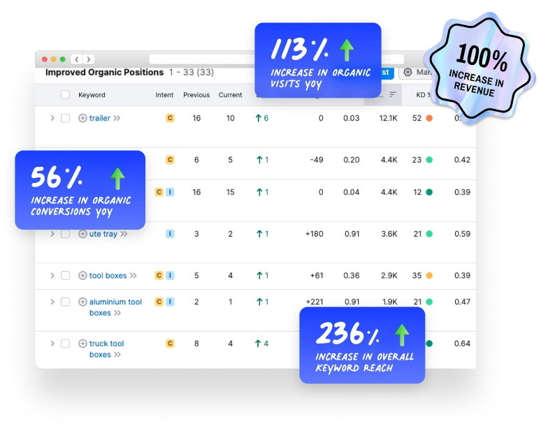 This isn’t a trial for us, and your campaigns aren’t experiments. With over 10 years of testing, learning, and refining, we’ve developed an evidence-driven online marketing framework that’s delivered impressive ranking results for over 1,000 businesses. Our proven road map is ready to be applied to your business—delivering faster, stronger outcomes